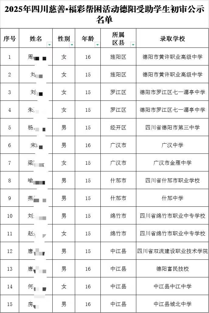 2025年四川慈善•福彩帮困活动德阳受助学生初审公示名单